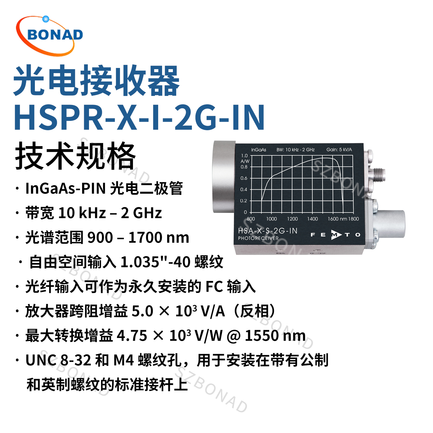 HSPR-X和HSA-X-S系列2GHz增益光電接收器德國(guó)FEMTO|深圳市博納德精密儀器有限公司 (szbonad.com)
